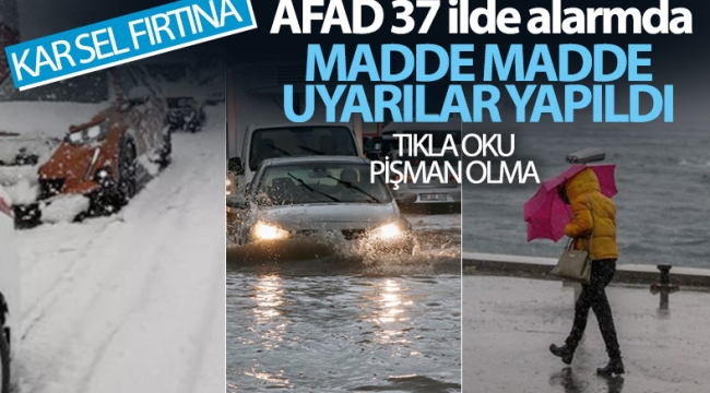 Başta İstanbul olmak üzere 37 ilde soğuk ve yağışlı havanın etkili olacağı uyarısı yapılarak, il AFAD merkezleri teyakkuz durumuna geçirildi.