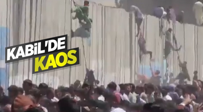 Kabil'den kaçmak için sivil ve askeri uçaklarla ülkeyi terk etmeye çalışan Afganlardan bazılarının, halat yardımıyla 4 metrelik duvara tırmandığı görüldü.