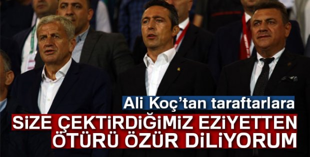 Fenerbahçe Başkanı Ali Koç, Çaykur Rizespor yenilgisin ardından sarı-lacivertli taraftarların arasına giderek, "Size çektirdiğimiz eziyetten ötürü özür diliyorum" dedi.