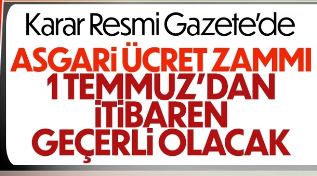 Resmi Gazete'nin bugünkü sayısında yayınlanan kara göre; asgari ücrette Temmuz maaşları yapılan yeni zamlarla birlikte ödenecek.
