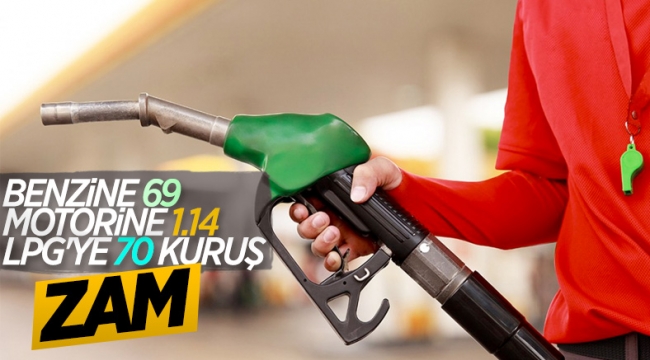 Buna göre motorine 1,14, benzine 69, LPG’ye 70 kuruş zam yapıldı.