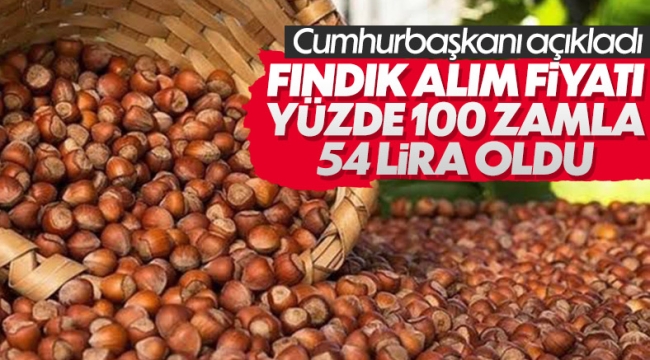 Cumhurbaşkanı Erdoğan, fındık alım kilogram fiyat ortalamasını 54 TL olarak açıkladı. Cumhurbaşkanı Recep Tayyip Erdoğan, açıklamasında şu ifadelere yer verdi;