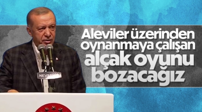 Cumhurbaşkanı Erdoğan, Nevşehir'de katıldığı Hacı Bektaş Veli'nin ölüm yıl dönümü nedeniyle düzenlenen anma programında "Alevi vatandaşlarımızın üzerinde oynamaya çalışan alçak oyunu bozacağız" dedi.