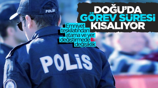 Personelimizden gelen talepler ve İl Emniyet Müdürlüklerimizin de görüşleri doğrultusunda il ve ilçelerin görev süreleri yeniden düzenlenmiş, Doğu ve Güneydoğu Anadolu Bölgelerimizde bulunan il ve ilçelerin süreleri büyük oranda düşürülmüştür.