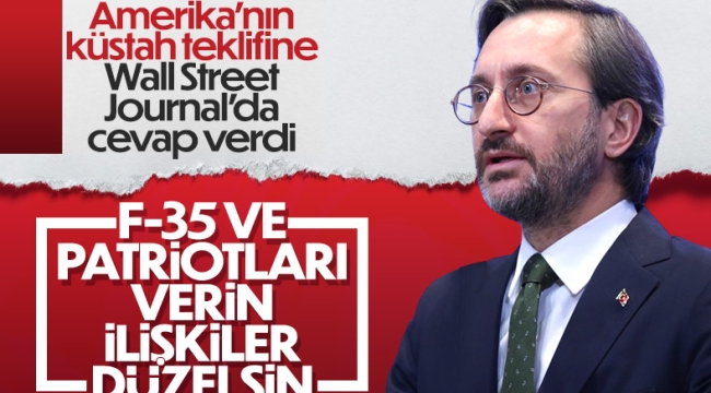 İletişim Başkanı Fahrettin Altun, Amerika'nın koşulsuz olarak F-35'leri ve Patriotları Türkiye'ye vermesi durumunda ilişkilerin düzeleceğini söyledi.