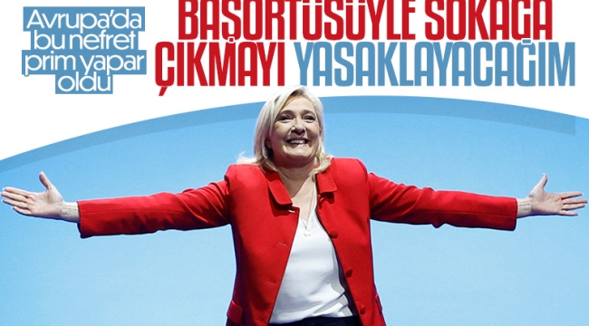 Aşırı sağcı Fransa Cumhurbaşkanı Adayı Marine Le Pen, sokakta başörtüsünü yasaklamanın elzem olduğunu söyledi. Le Pen, bu konudaki yasa tasarılarının hazır olduğunu belirtti.