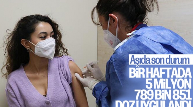 Kovid-19'la mücadelede, son bir haftada birinci ve ikinci doz toplam 5 milyon 789 bin 851 aşı uygulandı.