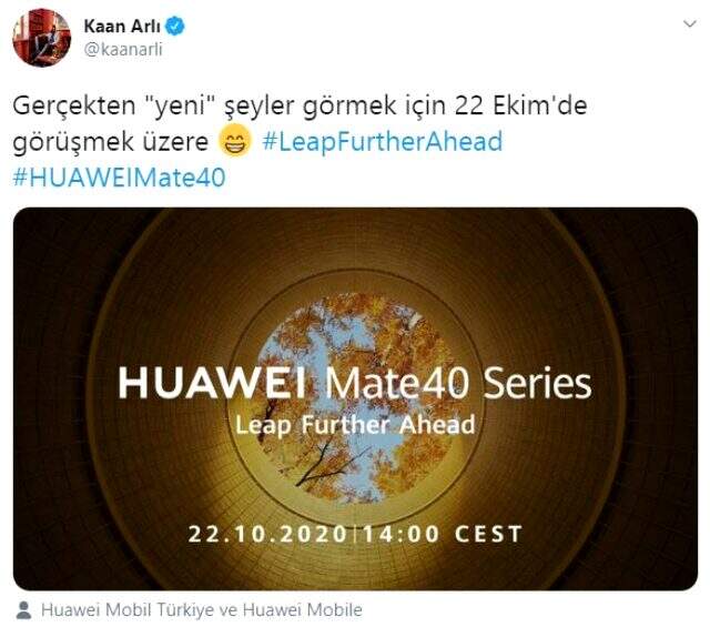 Huawei Türkiye iş geliştirme uzmanı Kaan Arlı, iPhone 12 modellerinin tanıtıldığı gecenin ardından Apple'a göndermede bulundu. Arlı, sosyal medya hesabı Twitter üzerinden yaptığı paylaşımda, "Gerçekten 'yeni' şeyler görmek için 22 Ekim'de görüşmek üzere" dedi.