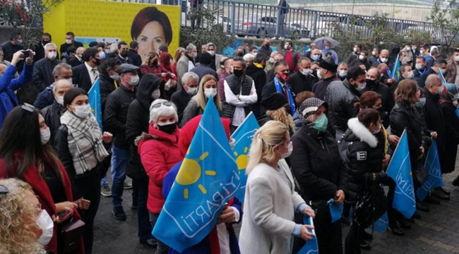 İstanbul İl Başkanlığı önünde toplanan İYİ Parti üyesi bir grup, yaptıkları basın açıklamasıyla yönetime istifa çağrısı yaptı. İstifa sloganları atan İYİ Partili grup, Adalet ve Hukuk Politikaları Genel Başkan Yardımcısı Bahadır Erdem ve İYİ Parti İstanbul İl Başkanı Buğra Kavuncu'nun istifa etmesini istedi.