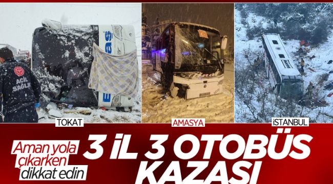 Etkili olan kar yağışının ardından, kaza haberleri peş peşe gelmeye başladı. Amasya, Tokat ve İstanbul'da, 3 yolcu otobüsü kaza yaptı.