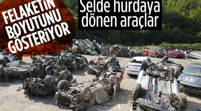 Önüne kattığını denize sürükleyen sel sularının hurda yığınına çevirdiği araçlar, felaketin boyutlarını da gözler önüne seriyor.