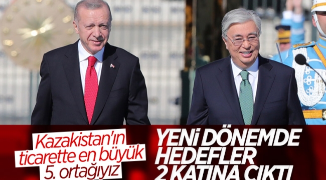 Cumhurbaşkanı Erdoğan, Kazakistan Cumhurbaşkanı Kasım Tokayev'i resmi törenle karşıladı. İki liderin görüşmesinde ülkeler arasındaki ticaret hacminin genişletilme yolları ele alınacak.