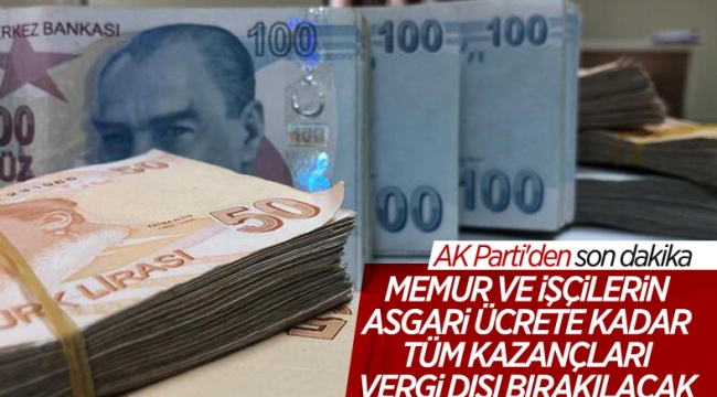AK Parti Grup Başkanvekili Mustafa Elitaş, "Memur dahil tüm çalışanların maaş ve ücretlerinin brüt asgari ücrete kadar olan kısmı vergiden muaf olacak" dedi.
