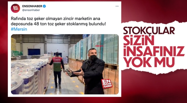 Bir zincir marketin deposunda yapılan denetimde, satışa hazır halde stoklanmış 48 ton toz şeker ele geçirildi. Market hakkında stokçuluk ve haksız kazançtan dolayı tutanak tutuldu.