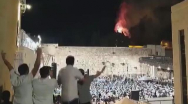 İsrail polisinin Mescid-i Aksa'daki cemaate saldırıları devam ederken, Harem-i Şerif'teki bir ağaca sıçrayan alev, Mescid-i Aksa bahçesinde yangına neden oldu. Alev alev yükselen dumanlara itfaiye müdahale ederken, fanatik Yahudiler sevinç çığlıkları eşliğinde kutlama yaptı. O anlar ise sosyal medyada büyük yankı uyandırdı.