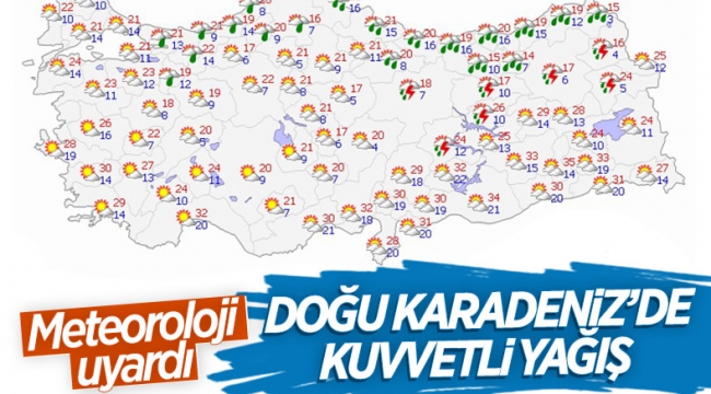 Meteoroloji Genel Müdürlüğü, Trabzon'un doğusu, Rize il geneli ve Artvin'in kıyı kesimlerinde kuvvetli yağışlar beklendiğini, sel ve su baskınlarına karşı dikkatli olunması konusunda uyarıda bulundu.