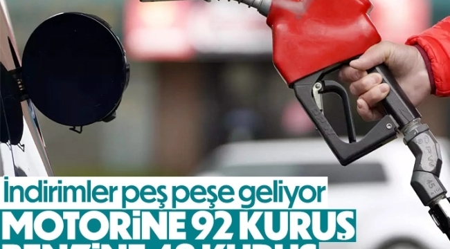 Motorine 26 Temmuz itibariyle gelecek olan 92 kuruşluk indirimin ardından benzinde de 27 Temmuz itibariyle 48 kuruşluk indirim yapılması bekleniyor.