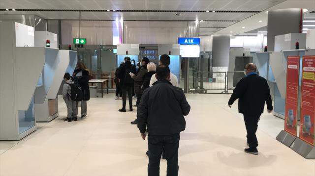 Sağlık ekipleri tarafından uçakta iletişim ve adres bilgileri alınan yolcular, daha sonra havalimanı içerisindeki Kovid-19 PCR testi alanına götürüldü. Burada sağlık ekiplerince yolculardan numune alındı.
