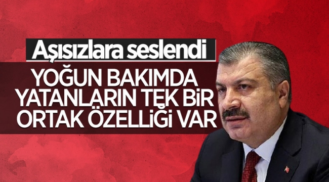 Sağlık Bakanı Fahrettin Koca, yoğun bakımdaki hastaların çoğunun aşısız veya aşıları eksik kişiler olduğunu söyledi.
