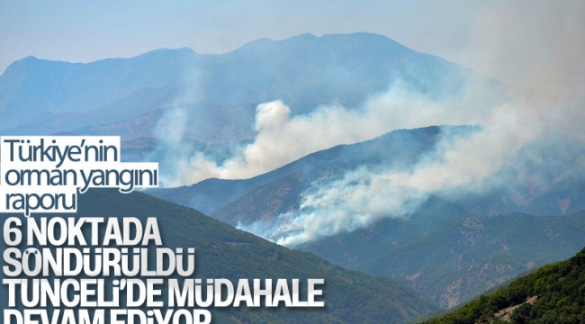 Ülke genelindeki 6 orman yangınının kontrol altına alındığı belirtilen açıklamada, Tunceli'de tek bir noktada yangınla mücadelenin sürdüğü bildirildi.
