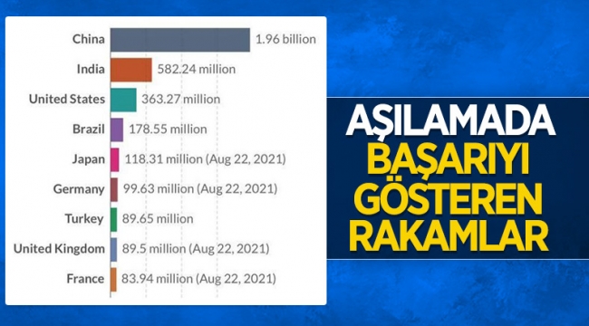 Listenin ilk sırasında ise 1 milyar 96 milyon doz sayısıyla Çin yer alıyor.