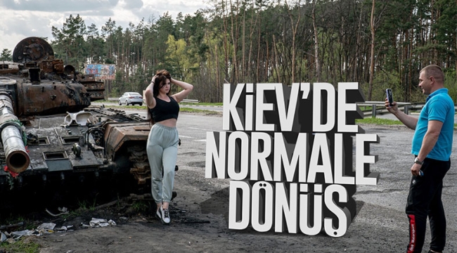 Rusların çekildiği Kiev ve çevresinde hayat normale dönmeye başlarken, bölgeye dönen Ukraynalıların imha edilen Rus savaş araçları önünde fotoğraf çektirdikleri görüldü.