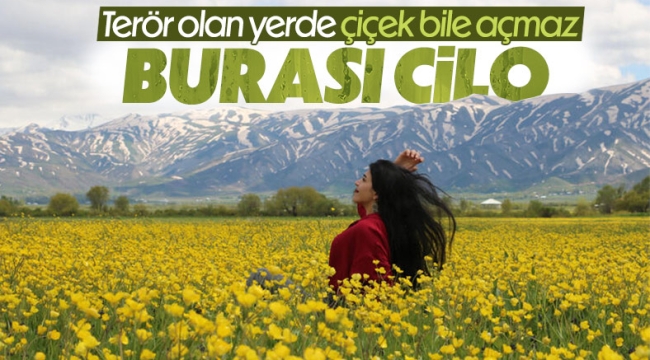 Yüksekova ileçesindeki düz ovanın yeşil örtüsü, boy vermeye başlayan sarı çiçekler ve 4 bin 200 rakımlı Cilo Dağları'ndaki beyaz kar örtüsünün oluşturduğu renk cümbüşü, fotoğraf sanatçılarının ise ilgi odağı oluyor.