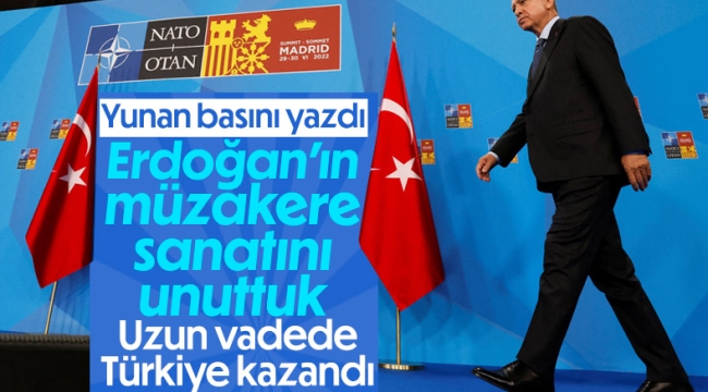 Yunan Ta Nea gazetesinin "Erdoğan'ın Müzakere Sanatı" başlıklı makalesinde, Cumhurbaşkanı Erdoğan'ın NATO Zirvesi'ndeki rolüne dikkati çekildi.